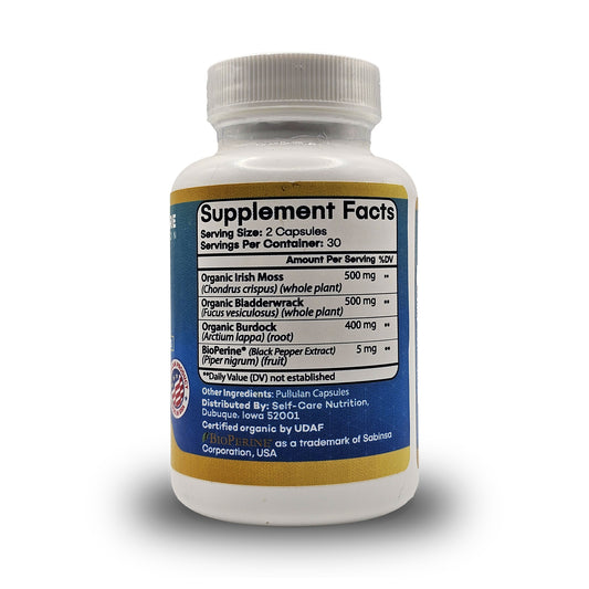 Sea Moss w/black pepper, Bladderwrack, and Burdock; 60 capsules, 30 servings